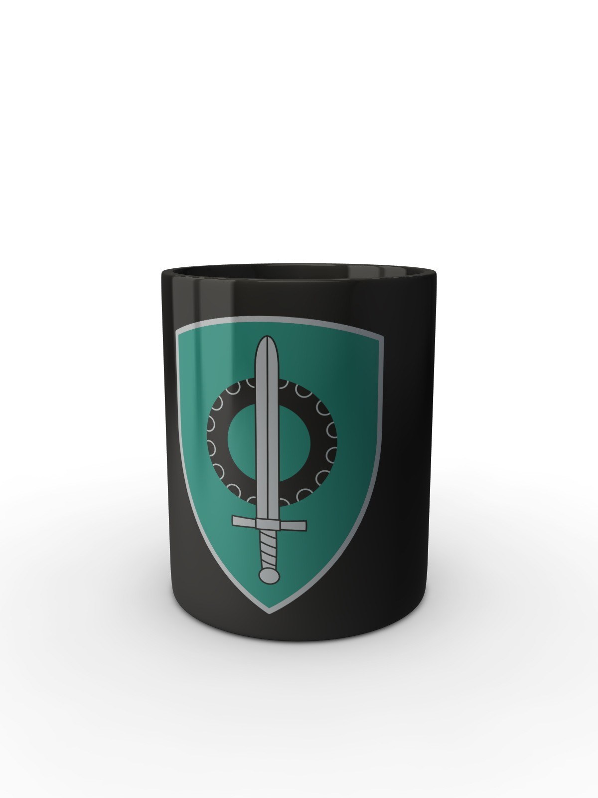 Černý hrnek s motivem 141. zásobovacího praporu z Pardubic