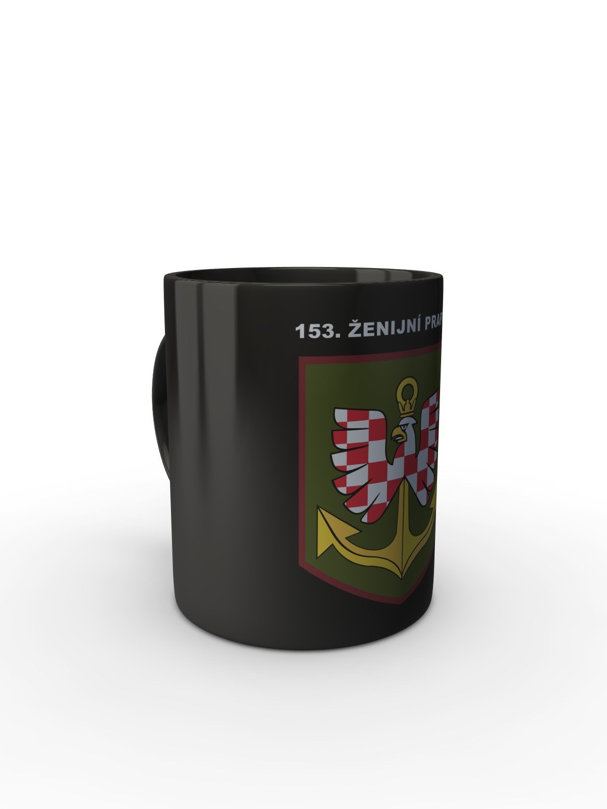 Černý hrnek s motivem 153. ženijního praporu.