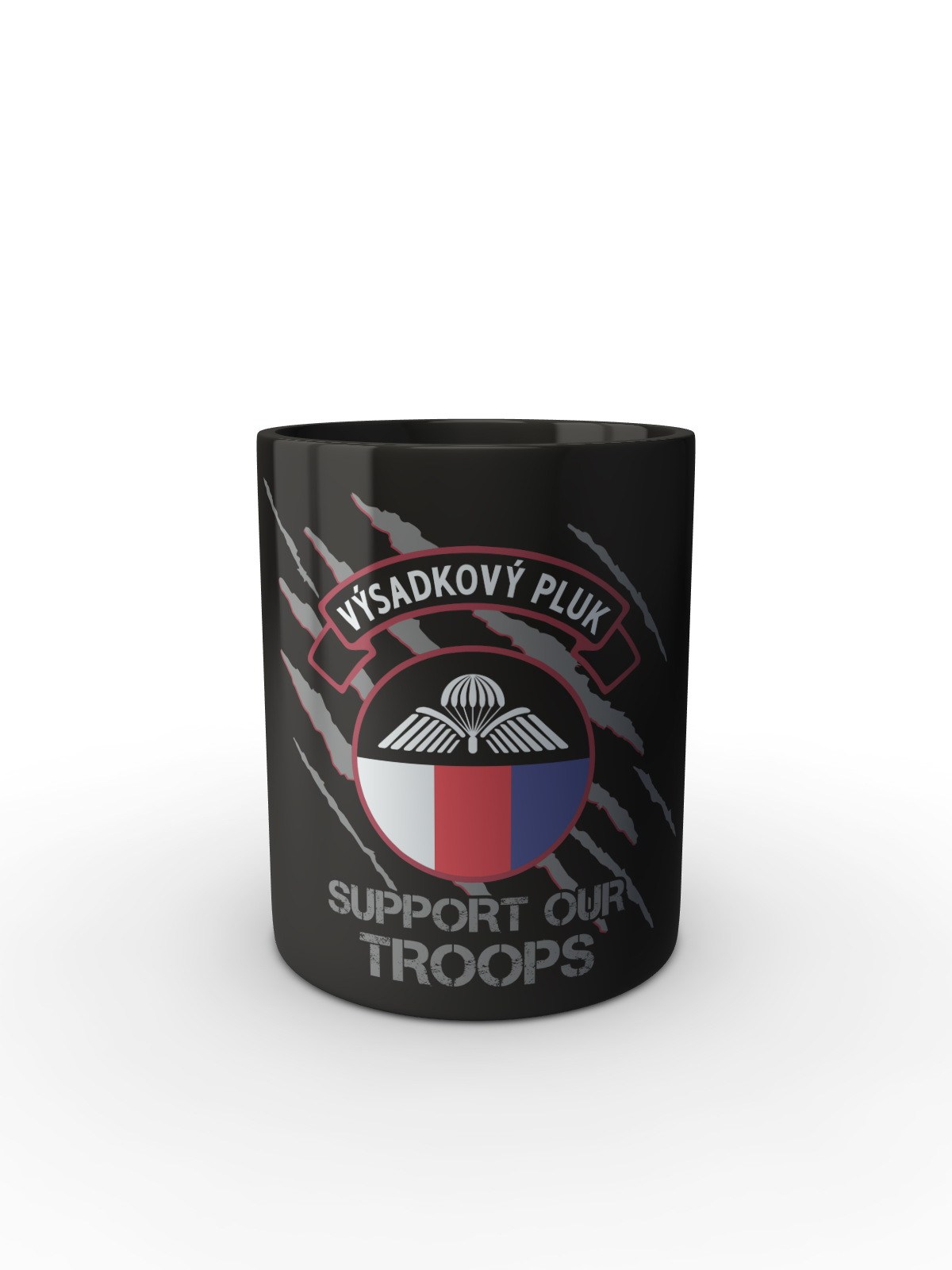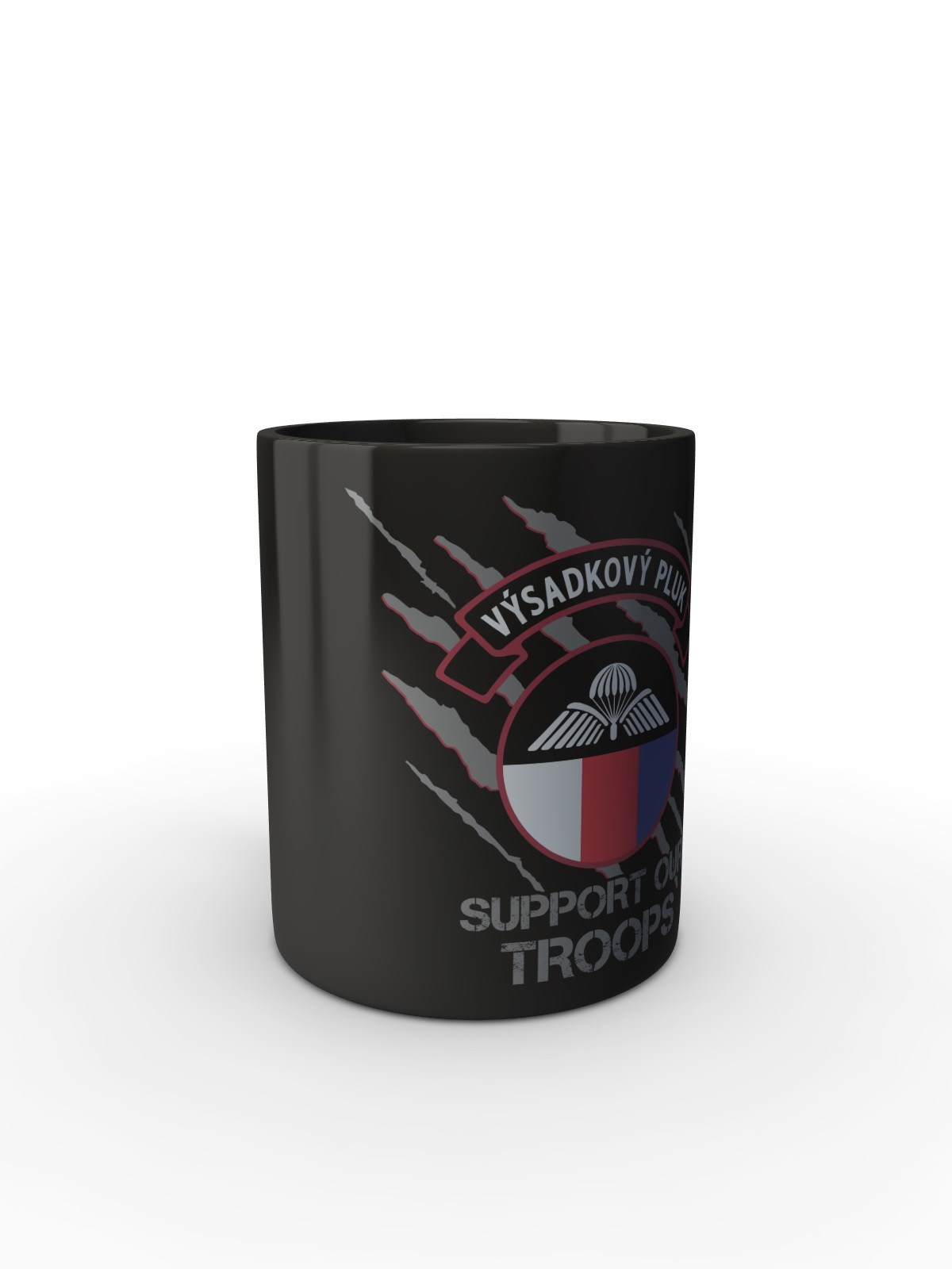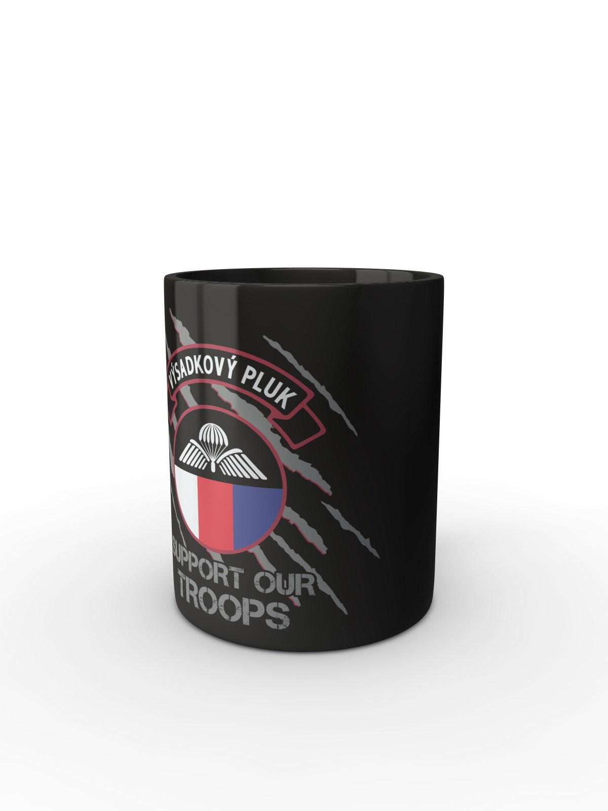 Černý hrnek s motivem 43. výsadkového pluku. Hrnek byl navržen ve spolupráci s výsadkáři a zisk z jeho prodeje jde na dobrou věc.