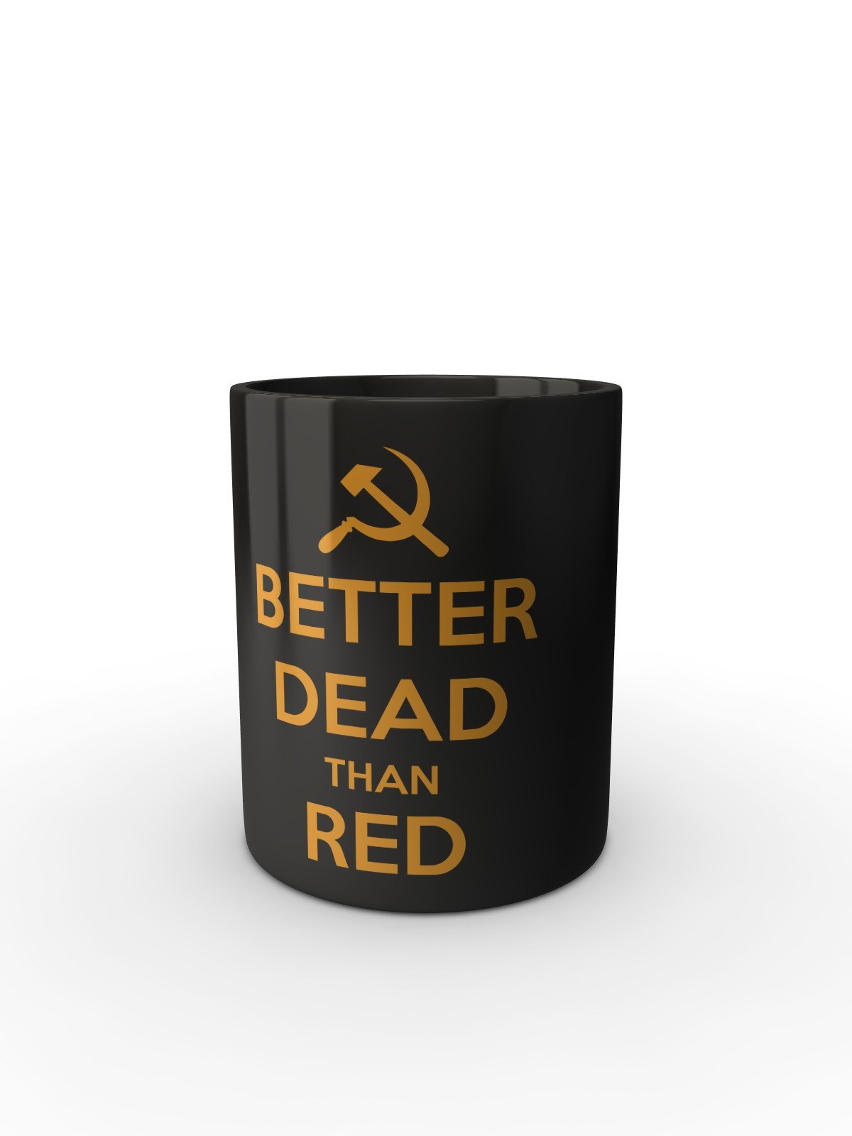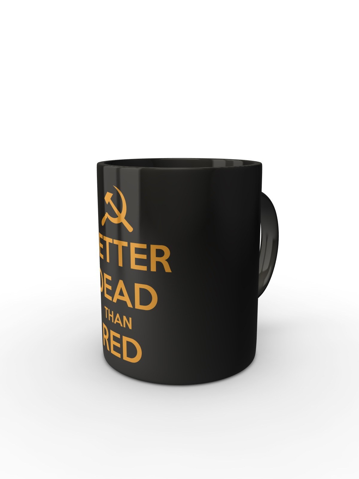 Černý hrnek s protikomunistickým motivem. Je lepší být mrtvý než rudý.