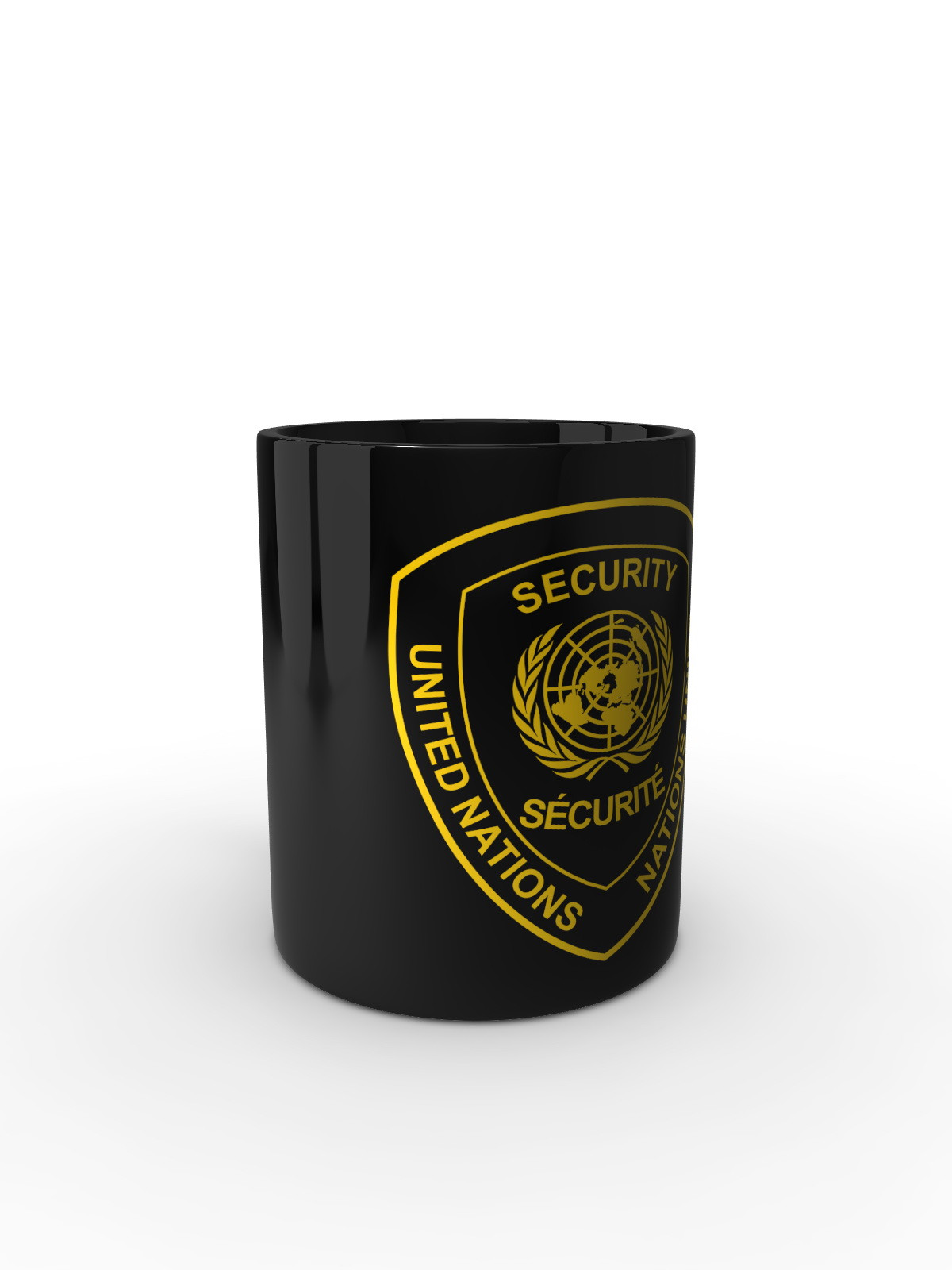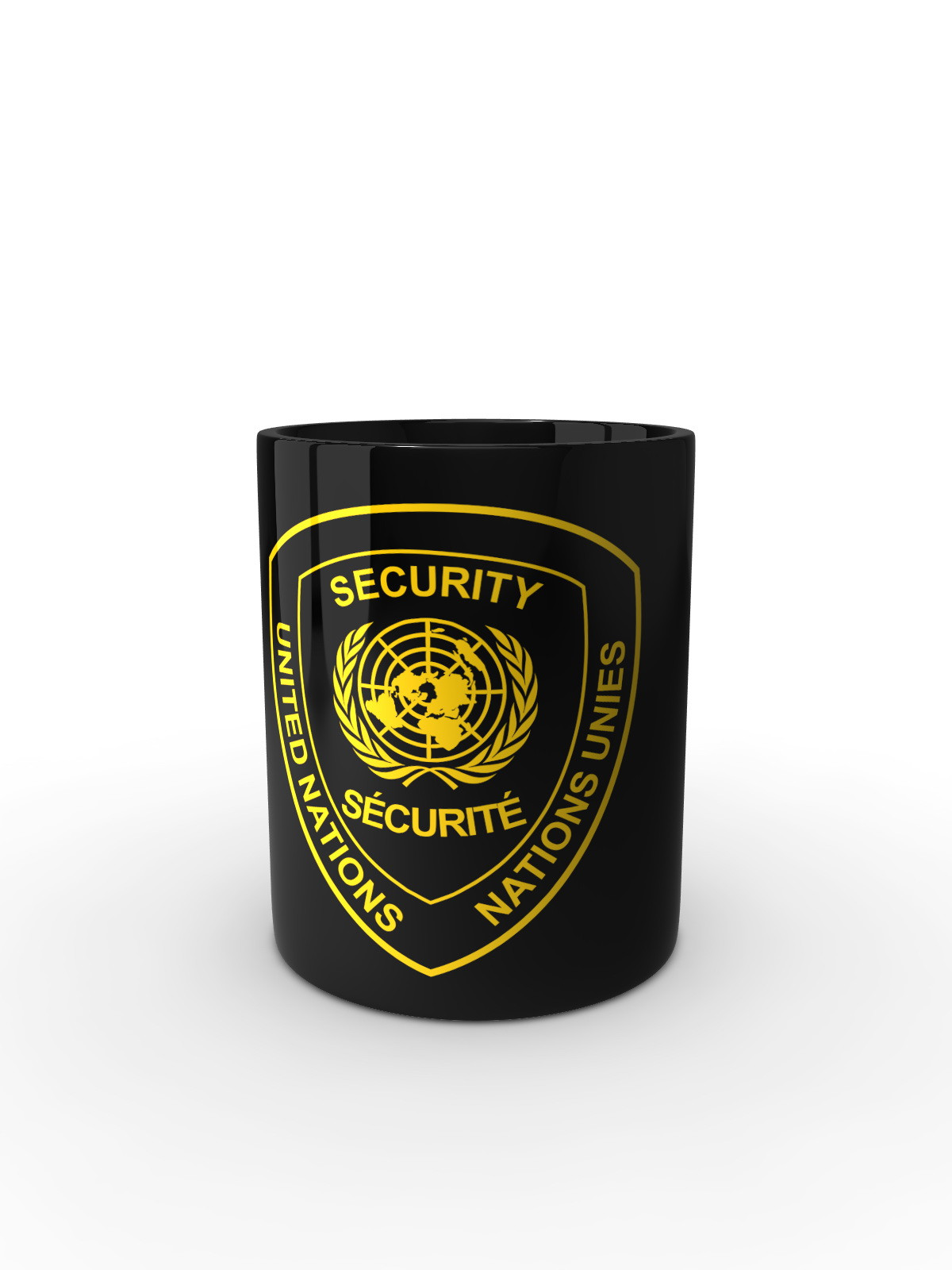 Černý keramický hrnek s motivem zanhraniční mise UNGCI (UNITED NATIONS GUARDS CONTINGENT IN IRAQ).