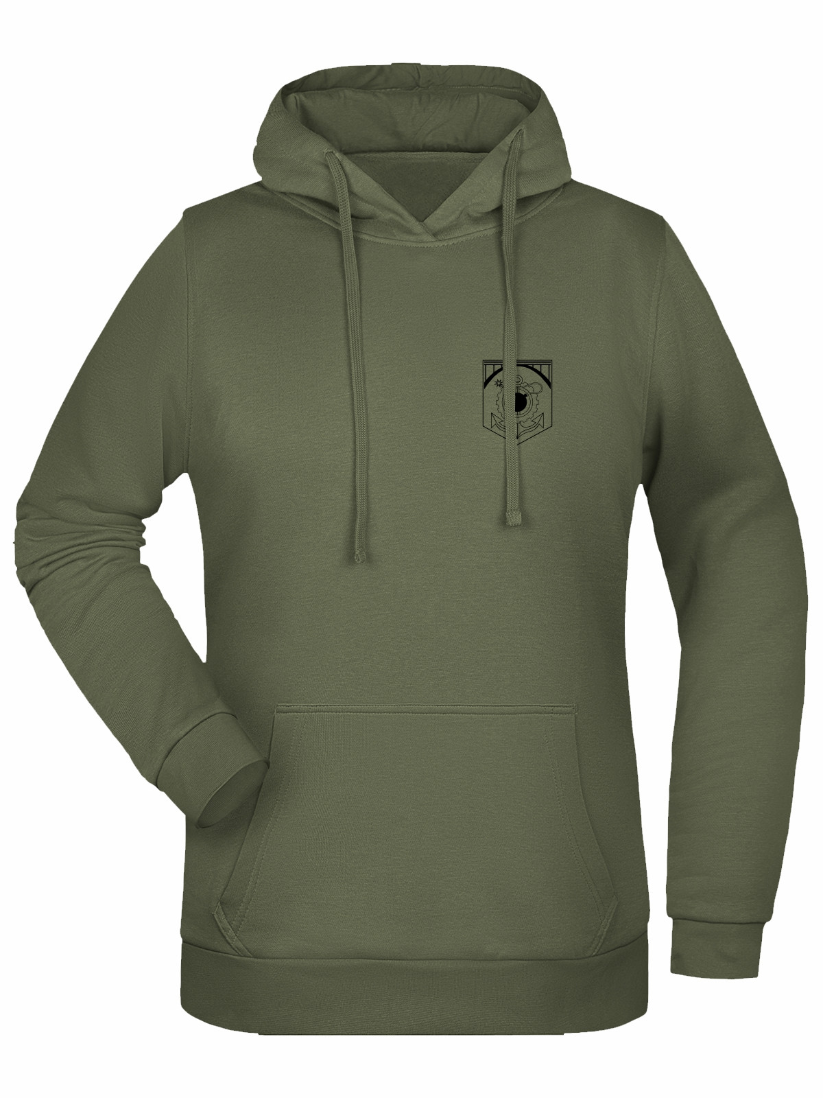Lehce vypasovaná dámská mikina s kapucí a motivem 152. ženijního praporu. Vyrobená z 280g/m² 80% bavlny a 20% polyesteru, nabízí 2-vrstvou kapuci se šňůrkou, krční lemovku, manžety s elastanem a klokaní kapsu. Uvnitř počesaná pro maximální pohodlí.